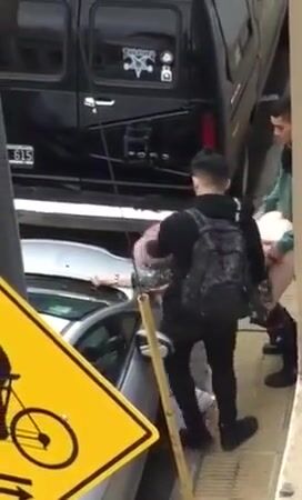 Pretty whore double fucked in the street